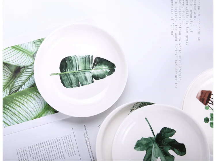 Круглый зеленый завод фарфор набор обеденных тарелок 8 дюймов посуда