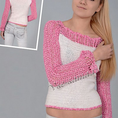 Белый с розовым пуловер